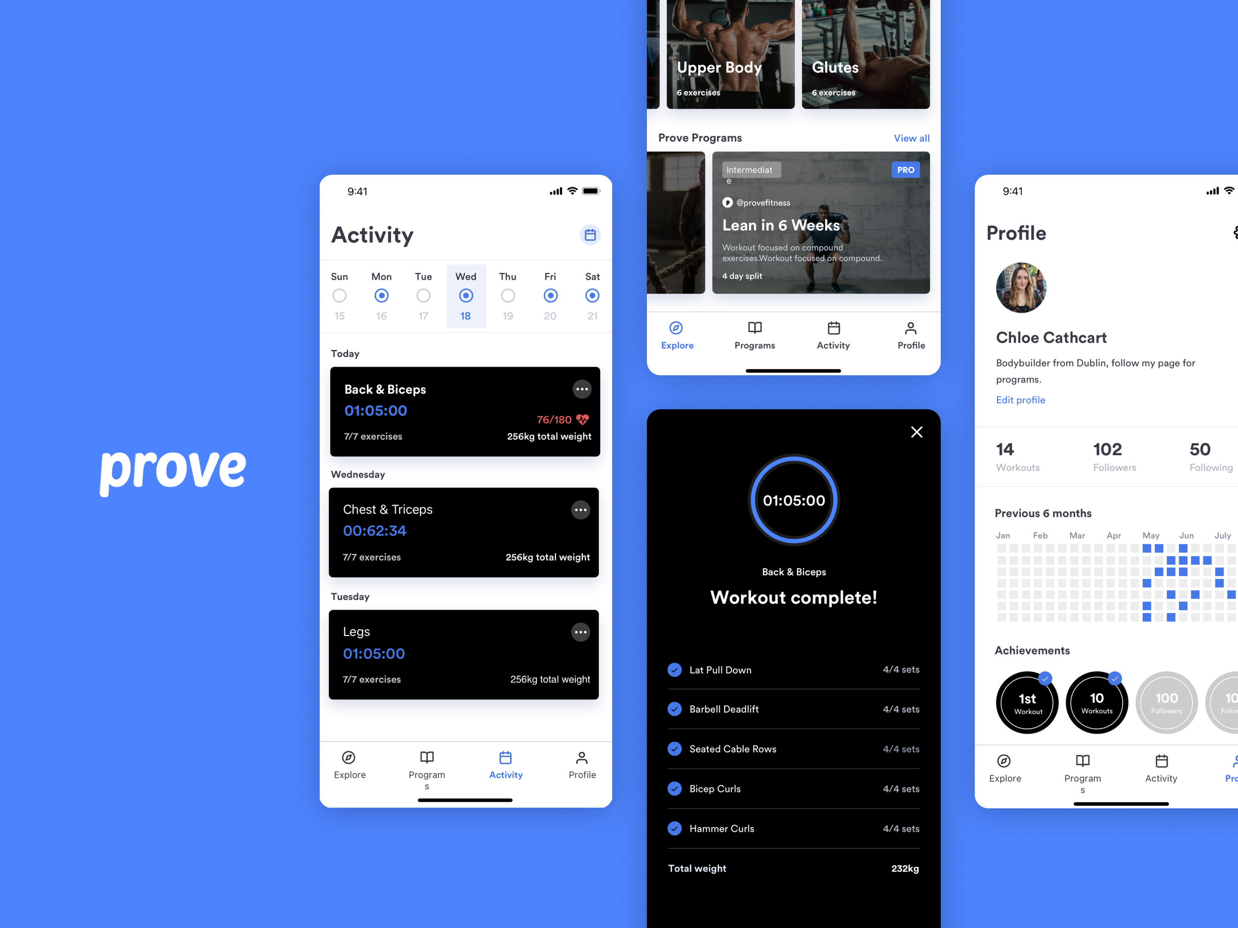 A concept app created to improve how people track and stay consistent with strength training. Prove focuses on usability and motivation through simple workflows, clean design, and meaningful data visualization.
